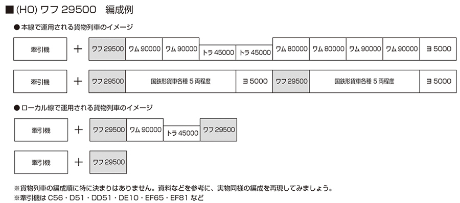 可搭配 <1-203 (HO) 蒸汽機關車 D51標準量產形> 及各種貨車模型一同享受真實的鐵道運行樂趣。