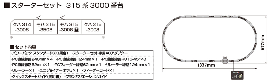 ◆入門套裝包含了315系3000番台列車及運行所需的車輛、軌道(Unitrack)與控制設備,是一套完整的一體化組合。作為升級選擇,也推薦同時購買預定同步發售的〈10-2067 313系300番台(靜岡車輛區)〉或〈10-2068 313系1000番台〉,以擴編為長編成列車,或擴充軌道與其他在同一地區運行的列車進行交會運行。