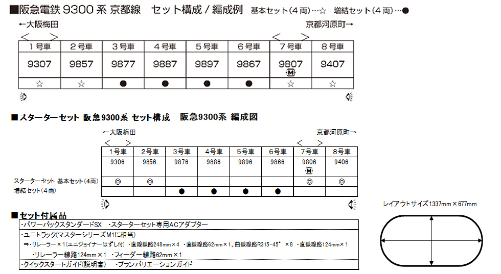 列車規格與「10-1822 阪急電鐵9300系 京都線 基本組(4輛)」相同,並同樣搭載無槽馬達。