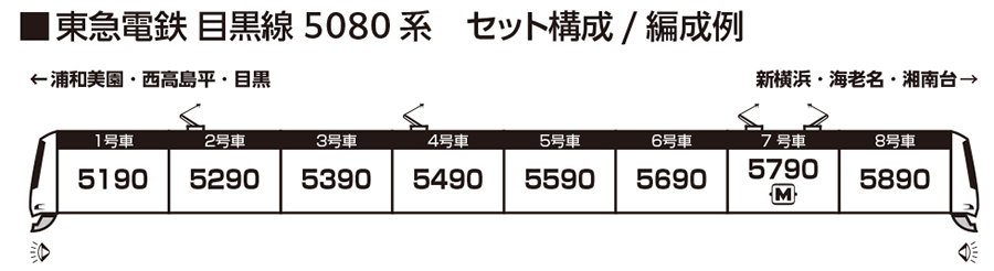 ●東急 5080 系是於平成 15 年(2003 年)登場的目黑線用車輛。此系列可對應與東京地鐵南北線、東京都交通局(三田線)、埼玉高速鐵道的直通運轉以及單人司機操作。