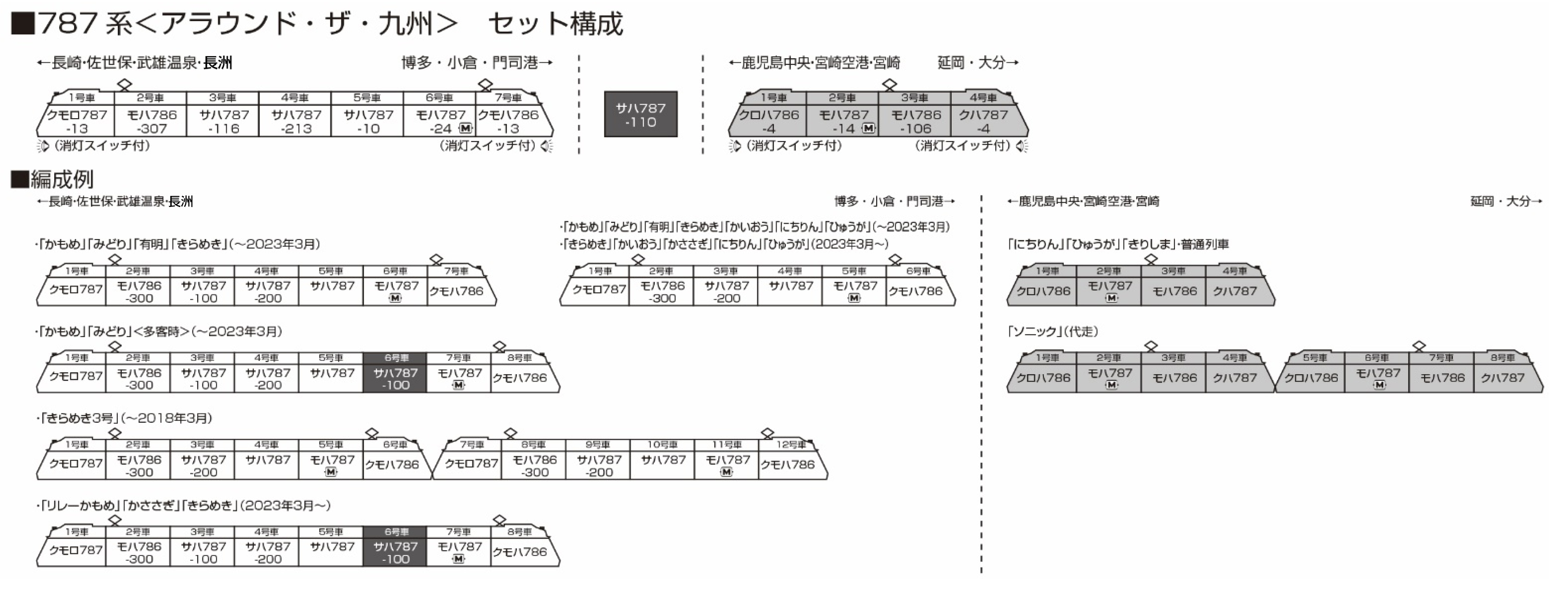 ・行先表示シール付属。 新たに運用を開始した「かささぎ」「リレーかもめ」を収録