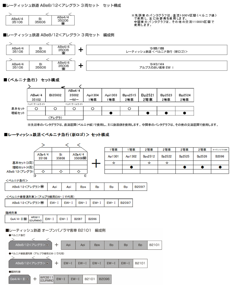 <アレグラ>は電車ながら機関車と同等の出力を誇り、客車を牽引しての活躍も見られるユニークな低床車体構造の車両で、ベルニナ線の70‰という急勾配区間にも対応する5種類のブレーキ装置を有しています。本線での時速100km/h走行から、路面軌道も走行するという、変幻自在の高性能車両で、レーティッシュ鉄道の各線で活躍、「氷河特急」とともにスイスの鉄道風景を模型で楽しむには好適な車両です。
