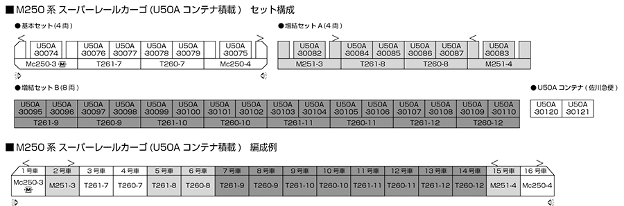 ●作為日本唯一的「貨物電車」,M250系超級鐵路貨物車將再次投入生產。該列車的完整編組將被精確重現,並提供N比例模型新手可以輕鬆享受的基本套裝(4節車廂)。同時,單獨販售的U50A型貨櫃可搭配貨物車站板或貨櫃裝卸機模擬裝卸場景,進一步增加趣味。