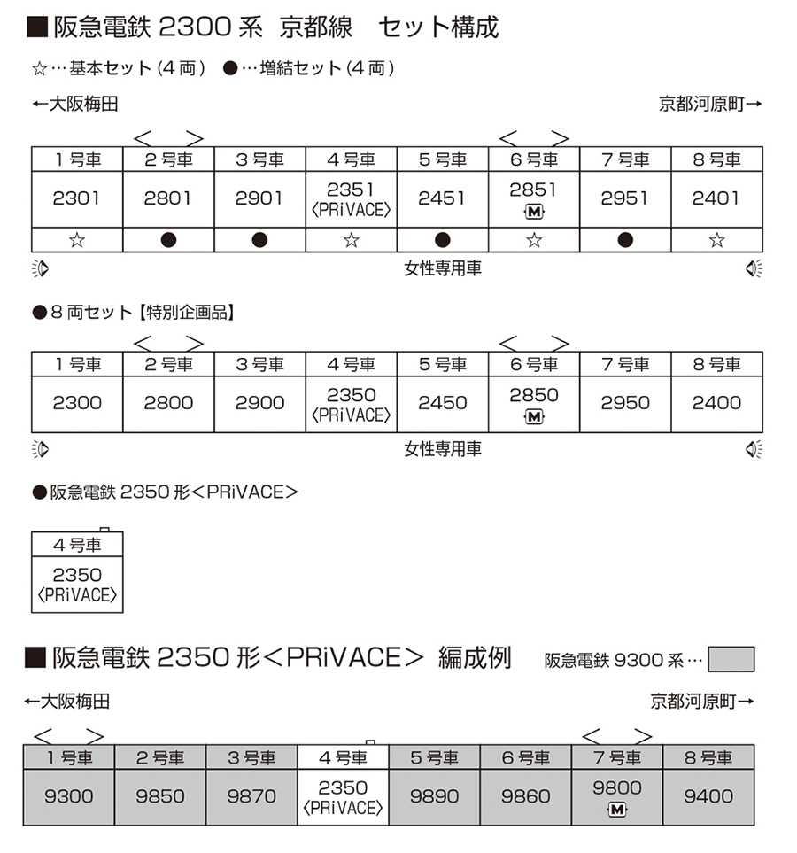 ◆阪急電鐵2350形(可編入阪急電鐵9300系京都線編組內)亦同步單獨發售,讓您更靈活搭配,重現實際運行編成。