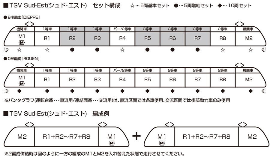 ●兩種電源規格的 84 編成(5 輛基本組/5 輛增結組)與 08 編成(10 輛組)商品化。