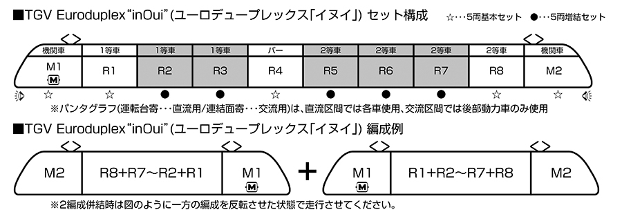 ●可再現如實車般的雙編成(20輛)連結,也可與其他TGV系列、德國ICE4等列車模型一同編組遊玩!