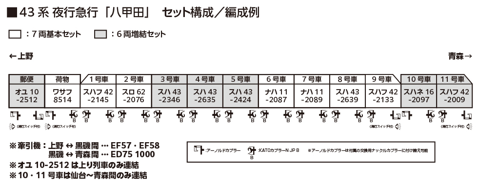 KATO 10-2181 客車 43系 夜行急行「八甲田」基本 (7輛)