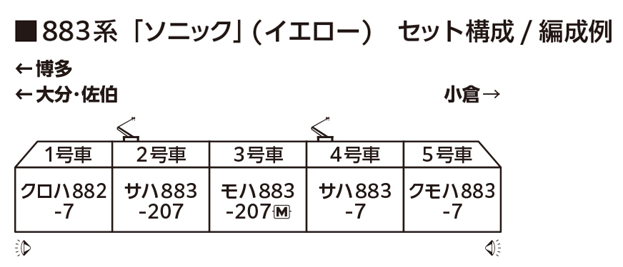 ◆KATO 的883系系列中,具有黃色前面罩特色的5輛組合,將睽違已久再次生產。