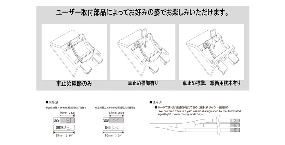 ● 同系列還有 車止線軌道 A 66mm(標誌燈可點亮)
