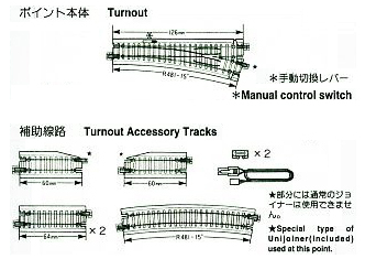 ●路床寬度與外觀等基本規格(單線・黑色木枕木)與一般單線UNITRACK相同,與其他直線軌道與道岔完全相容。