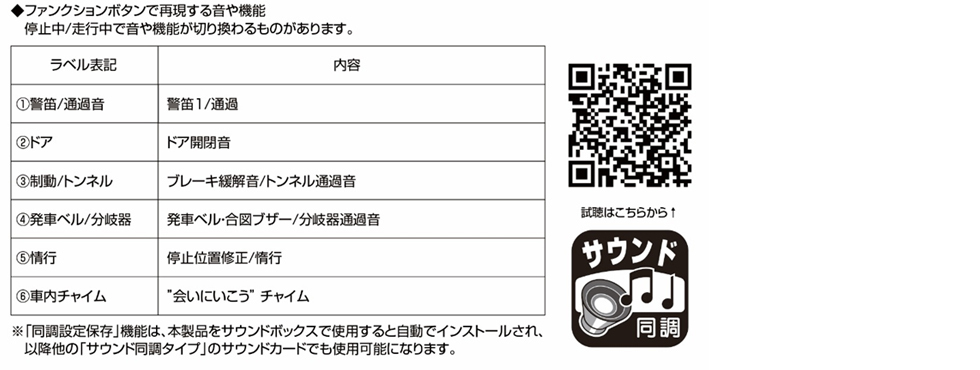 ・本製品は音の加速・減速に合わせて車両の速度が変化する「サウンド同調」タイプですが、「同調設定保存」機能のプログラムを搭載しています。一度コントローラー優先モードに設定すると、任意の解除がない限りモードを維持しますので、これからサウンドボックスを用いた運転をはじめる方でも手軽にお楽しみいただけます。
