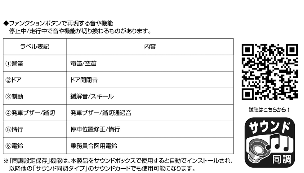 ● 本產品支援「音效同步」功能,可讓列車速度與音效同步變化,體驗更臨場的駕駛樂趣。此外,還具備 「同步設定記憶」功能,關閉電源後仍能保存設定,讓初次使用者也能輕鬆享受音效運行模式。