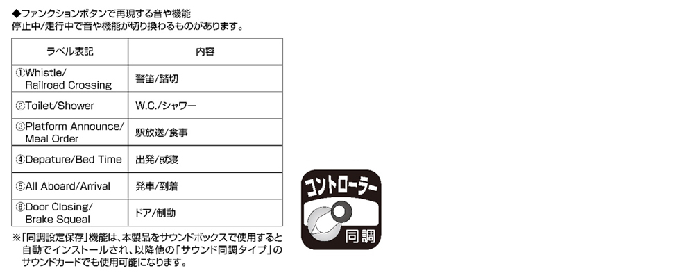 本製品はサウンドカード初心者でも楽しめる「コントローラー同調」タイプです。また「同調設定保存」機能のプログラムも搭載しています。コントローラー優先モードのON・OFF設定が保存されますので、これからサウンドボックスを用いた運転をはじめる方でも手軽にお楽しみいただけます。