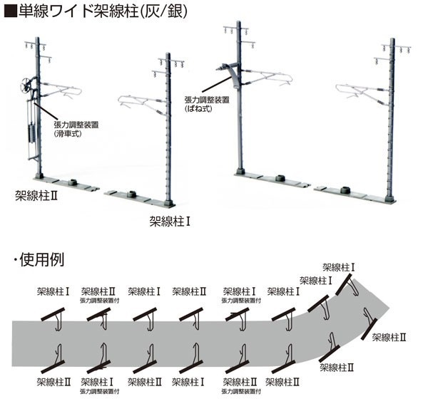這些架線柱追求細節的精密設計,具有厚重感,可適用於地方鐵路、複線幹線鐵路、新幹線等全國各地的各種車輛和場景。
