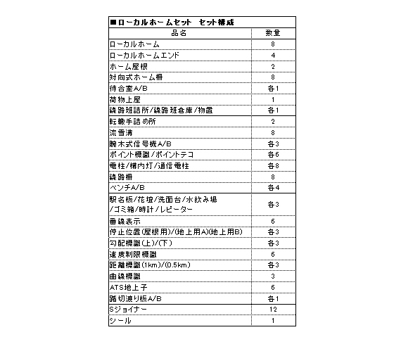 ● ホーム1本あたりの長さは124mm。ローカルホームセットは8本分、ローカルホーム延長セットは4本分の部品がセットされています