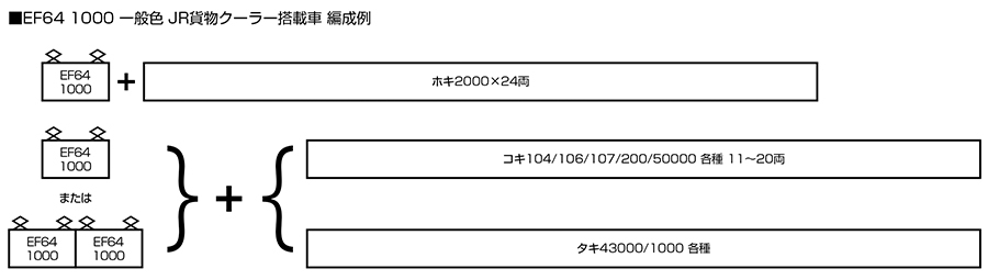◆此次再生產的 EF64 1000 搭載了駕駛台上冷氣機的外觀特徵,適合作為同時發售的〈10-2070 ホキ2000 矢橋工業〉石灰石列車的牽引機使用。