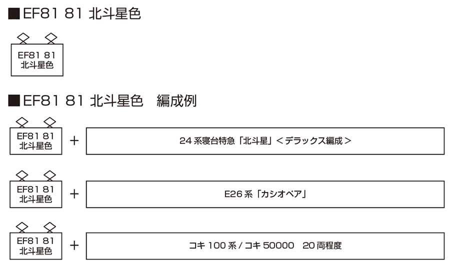 ●EF81 系電氣機關車在臥鋪特急「北斗星」運行時,其中部分車輛塗裝為紅色車體,並繪有大型流星圖案,即「北斗星色」。