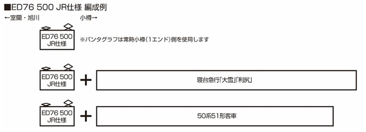 ●即使在JR化之後,ED76 500仍負責牽引14系臥舖列車與50系51形普通客車,其中牽引臥舖急行「大雪」「利尻」時,特別裝上的大型列車頭牌(Head Mark)成為其一大特色。