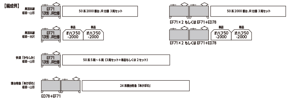 ●可搭配同時期推出的ED78 1次形 JR仕様、50系2000番台客車 JR仕様等,一同重現奧羽本線改軌前的Red Train風貌。