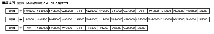 ●トキ15000 是從昭和23年(1948年)開始製造的35噸載重無蓋車,是戰後無蓋車的代表型號,主要用於運輸工業用物資。