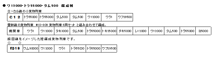 ●雖為小型二軸貨車,但在編成中具有鮮明存在感(ワ12000、トラ55000、タム500)