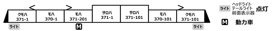 クモハ371-1+モハ370-1+モハ371-201(M)+サロハ371-1+サロハ371-101+モハ370-101+クモハ371-101