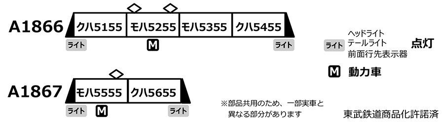 ●考慮到聯結運轉,A1867(2輛套裝)中的動力車台車設定為無橡膠輪胎配置