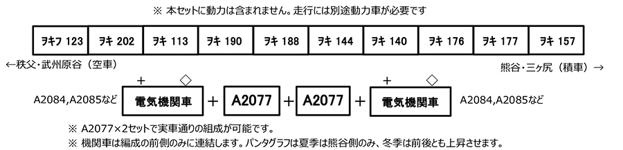 ●秩父鐵道是一家至今仍頻繁運行貨物列車的私鐵,其中最有名的就是由ヲキ100與ヲキフ100型貨車組成、長達20輛、總重達1000噸的石灰石貨物列車。