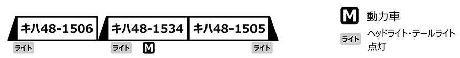 ●中間車キハ48-1534的頭燈、尾燈與前面方向幕可點燈