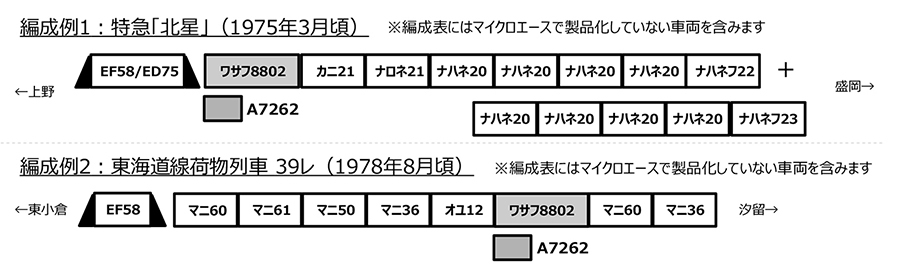 ●其中,ワサフ8800番台專門為特急「北星」的20系客車而設計,配備了CLE電磁自動空氣制動系統,與一般的貨車有所不同。