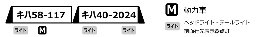 ●キハ58-117為不適用於長編組的車輛,並保留引擎換裝前的原始狀態。