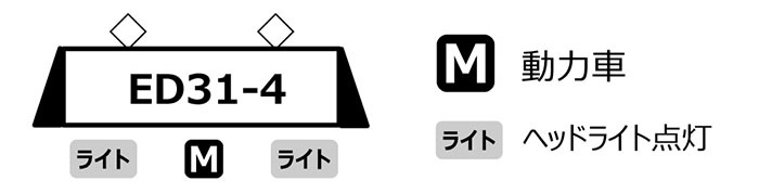 ●2025年3月,E34重新塗裝為仿國鐵直流電氣機關車(特急色),車身改為藍底搭配奶油色飾條,並換上「ED31 4」車號,形象煥然一新。