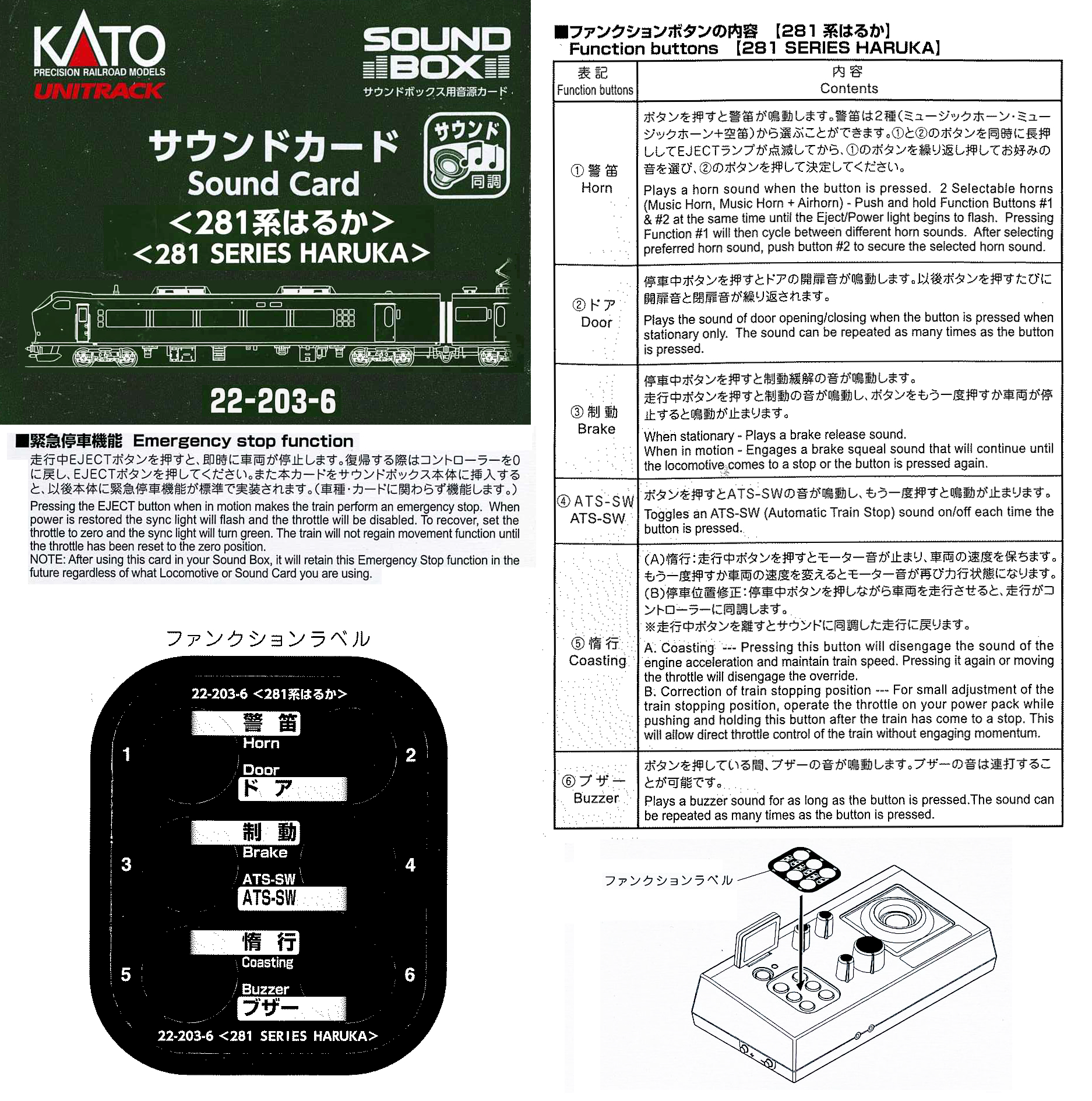 KATO 22-203-6 音效卡 電車<281系Haruka>