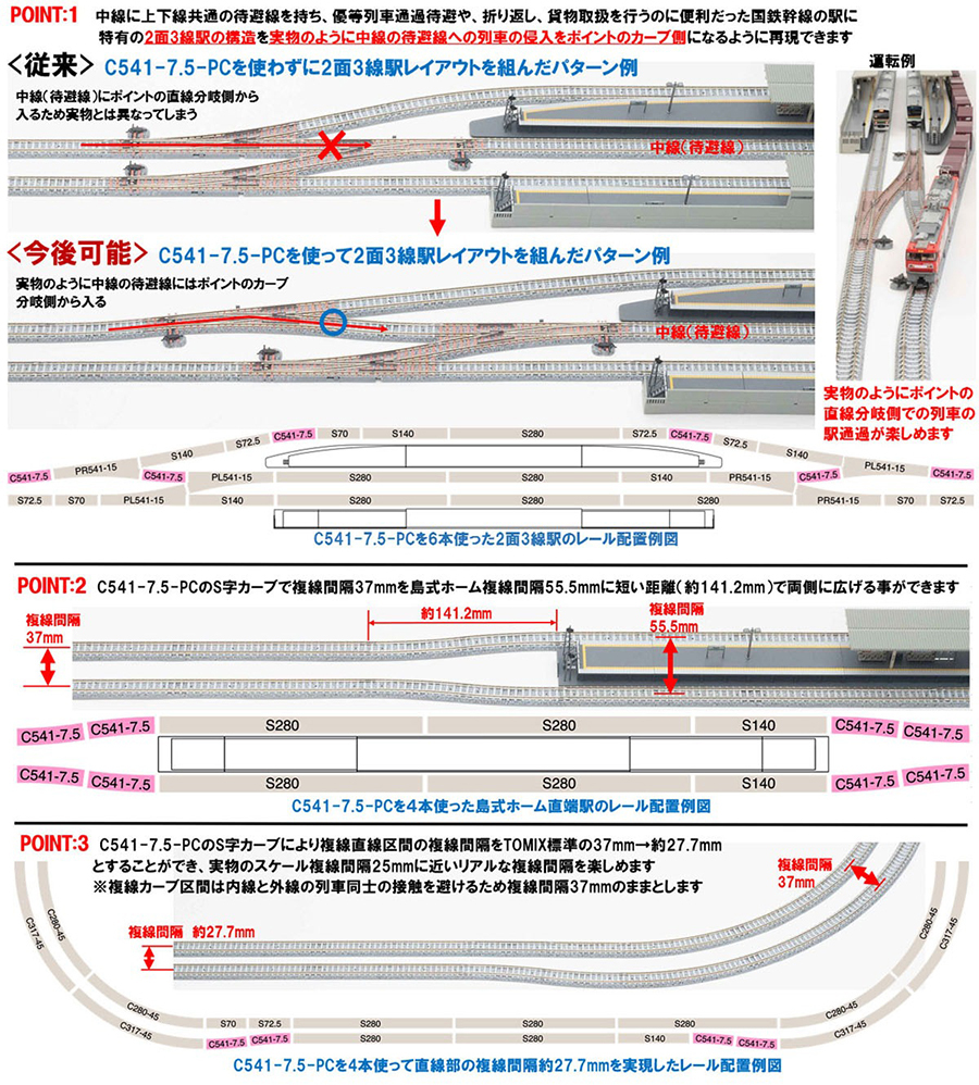 ●透過這組軌道,可實現更接近實物的軌道佈局,例如下方範例中的轉轍器配置。