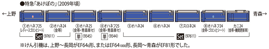 ●在「朝風(あさかぜ)1・4號」廢止之後,曾於該列車中活躍、塗有金色腰帶的24系25形客車之中,有部分車輛轉屬至青森車輛中心,並於「曙(あけぼの)」、「日本海」、「白鶴(はくつる)」等列車中繼續服役。