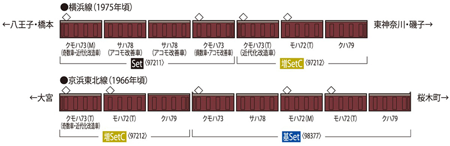 ●可與 <98377> 搭配,還原京濱東北線的 8 節編成;可與 <97211> 搭配,還原橫濱線的 7 節編成