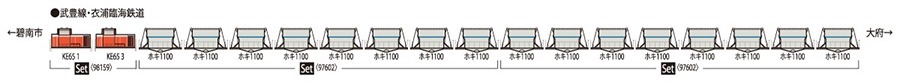 ●目前運行於 碧南市~東藤原 之間,開往碧南市時載運碳酸鈣,開往東藤原時則載運飛灰(Fly Ash),列車最長可達 16輛編成使用。