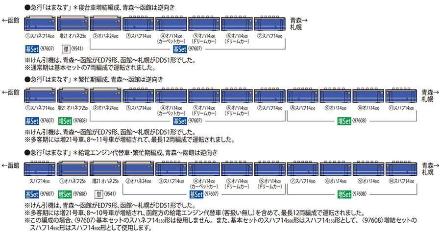 ●搭配基本套裝 <97607> 使用時,可重現最多 12 輛的增結編成