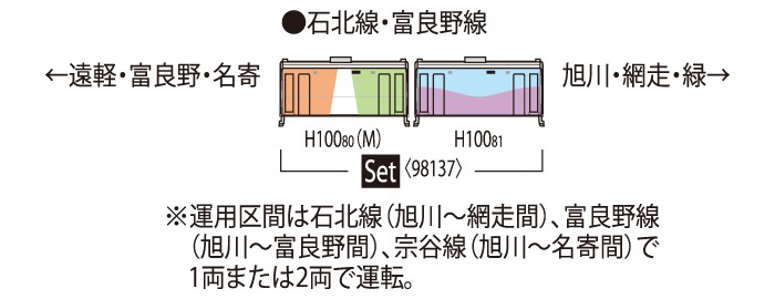 TOMIX 98137 柴聯車 JR H100形 (石北線.富良野線彩繪車) (2輛)