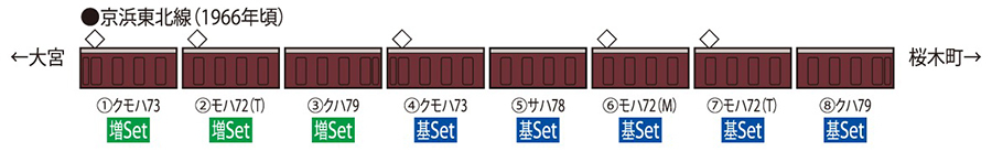 ●72・73形是作為63形電車的改良型登場,曾作為當時東京、大阪都市圈的通勤型電車標準而活躍。