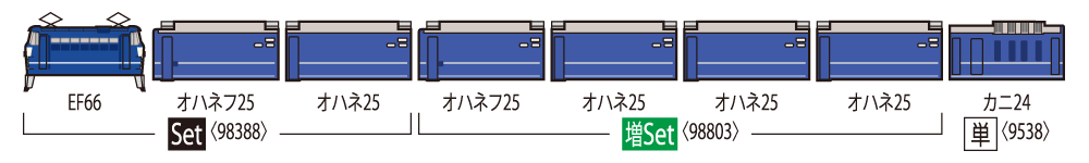 ●EF66-0形とオハネフ25形、オハネ25形の計3両をセット