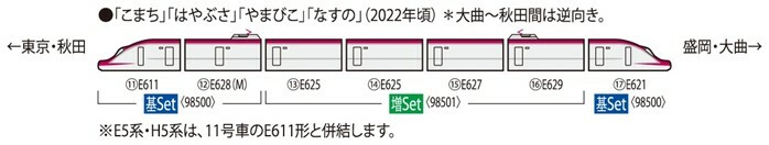 ●本製品(13・14・15・16号車)と品番98500を組み合わせて7両フル編成が再現可能