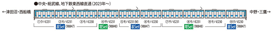 TOMIX 98847 電車 JR E231-800系 (中央.總武線地下鐵直通用) 基本 (6輛)