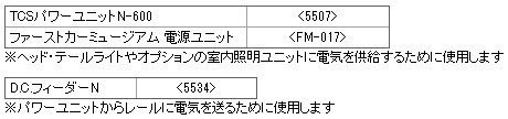 ●ヘッド・テールライト、補助灯、室内照明は、別売りのFM-017電源ユニット、パワーユニット・D.C.フィーダーを使うことで点灯