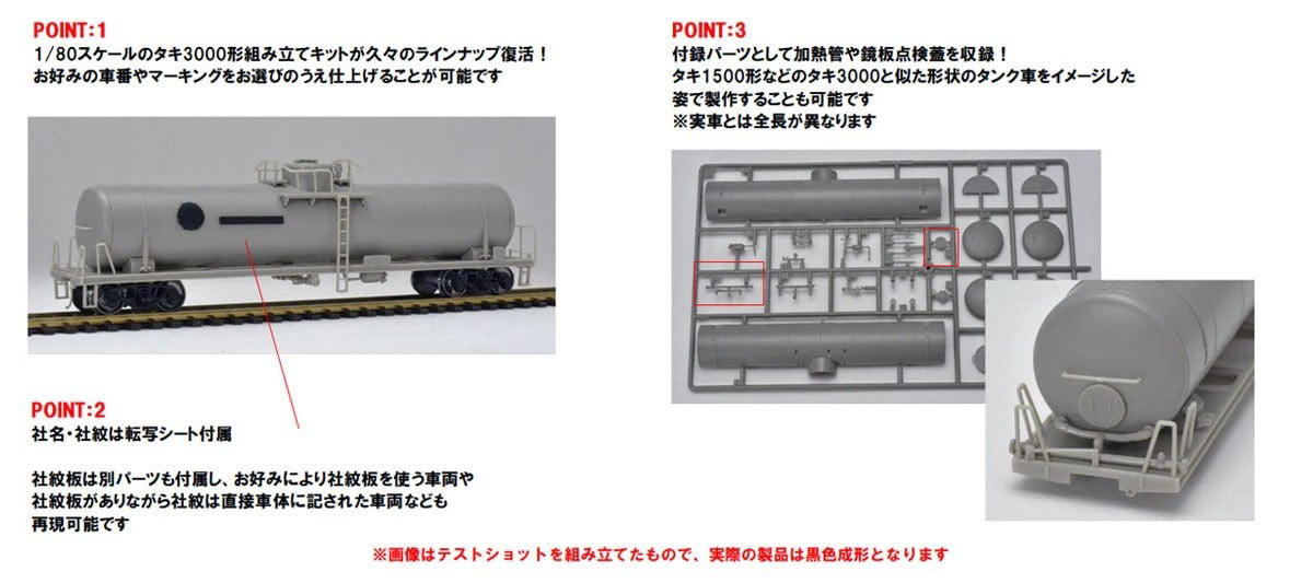 ●タキ3000型為30噸級的汽油運輸專用罐車,自1947年開始製造,共生產了約1500輛。