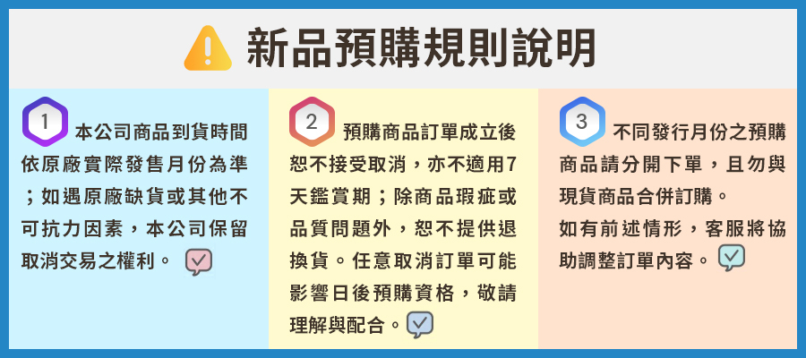 ◆勿將不同月份發售之預購商品或與現貨商品合併下單。