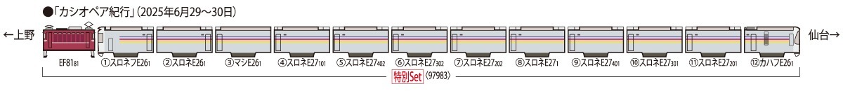 ●完整再現 2025年6月29日~30日「Cassiopeia 25週年紀念之旅」最終運行編成
